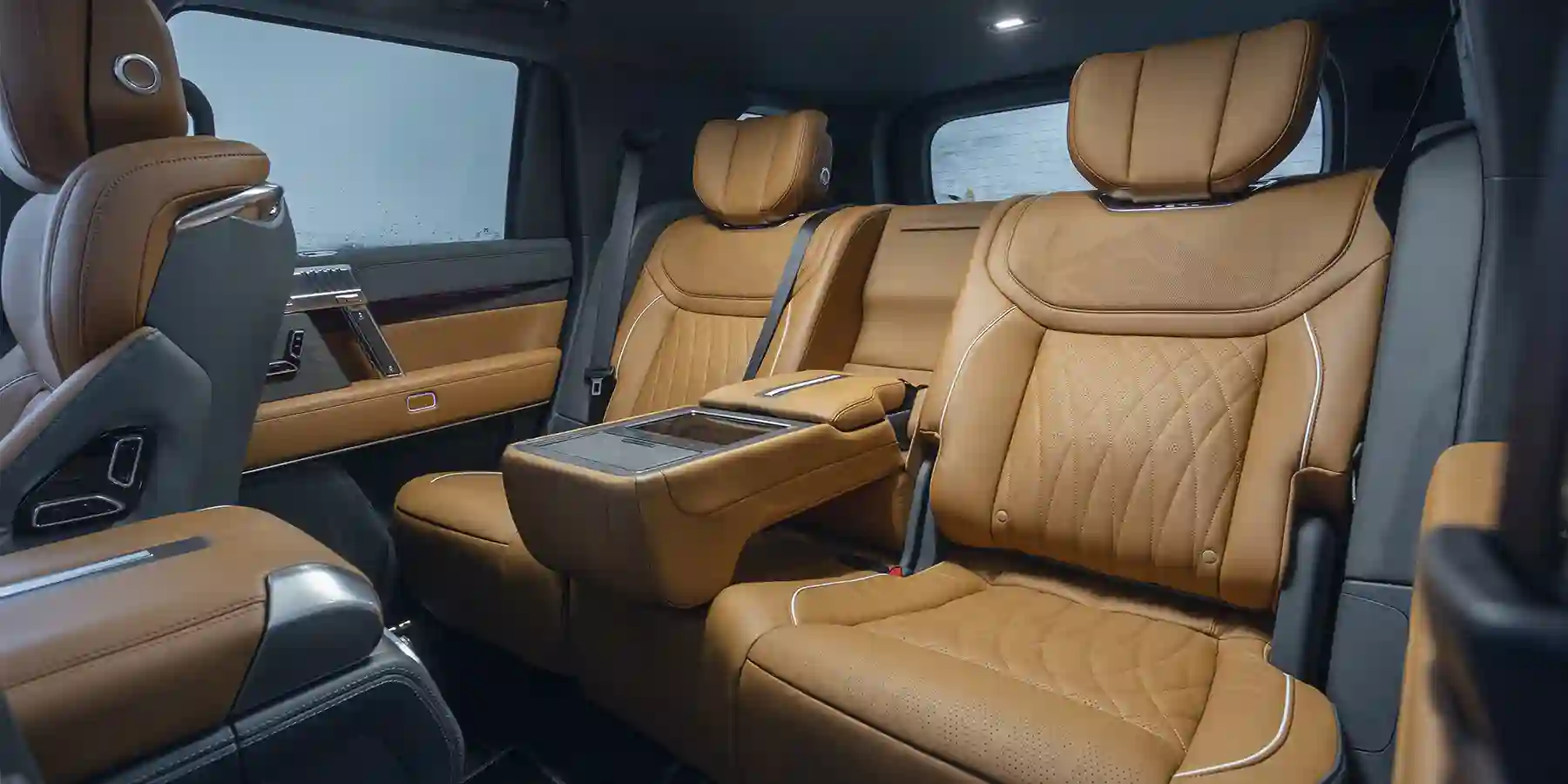 Дизайн интерьера выполнен в замечательном, слегка ироничном брутально-голливудском стиле, материалы отделки подобраны тщательно, со вкусом и знанием дела. Чего стоят одни только дверные ручки в стиле пистолета Magnum Desert Eagle: поблескивающая матовым хромом любимая пушка агентов «Матрицы» и многих героев Шварценеггера. Их украшает надпись never back down — «никогда не сдавайся», а когда дверь закрывается, раздается звук клацающего затвора. Под такой саундтрек даже большим и взрослым дядям сразу хочется мчаться куда-нибудь сломя голову. Переводим самолетные рукоятки селекторов коробки передач и внедорожных режимов (это же настоящий сектор газа: «взлетный режим», «чрезвычайный режим», «форсажный режим»!) в нужное положение — и вперед, спасать планету от пришельцев или исчадий юрского периода. Даже пассажиров приглашают участвовать в этой взрослой игре, вручая свою пару «магнумов» и разместив справа на передней панели еще один, третий, дисплей медиасистемы.